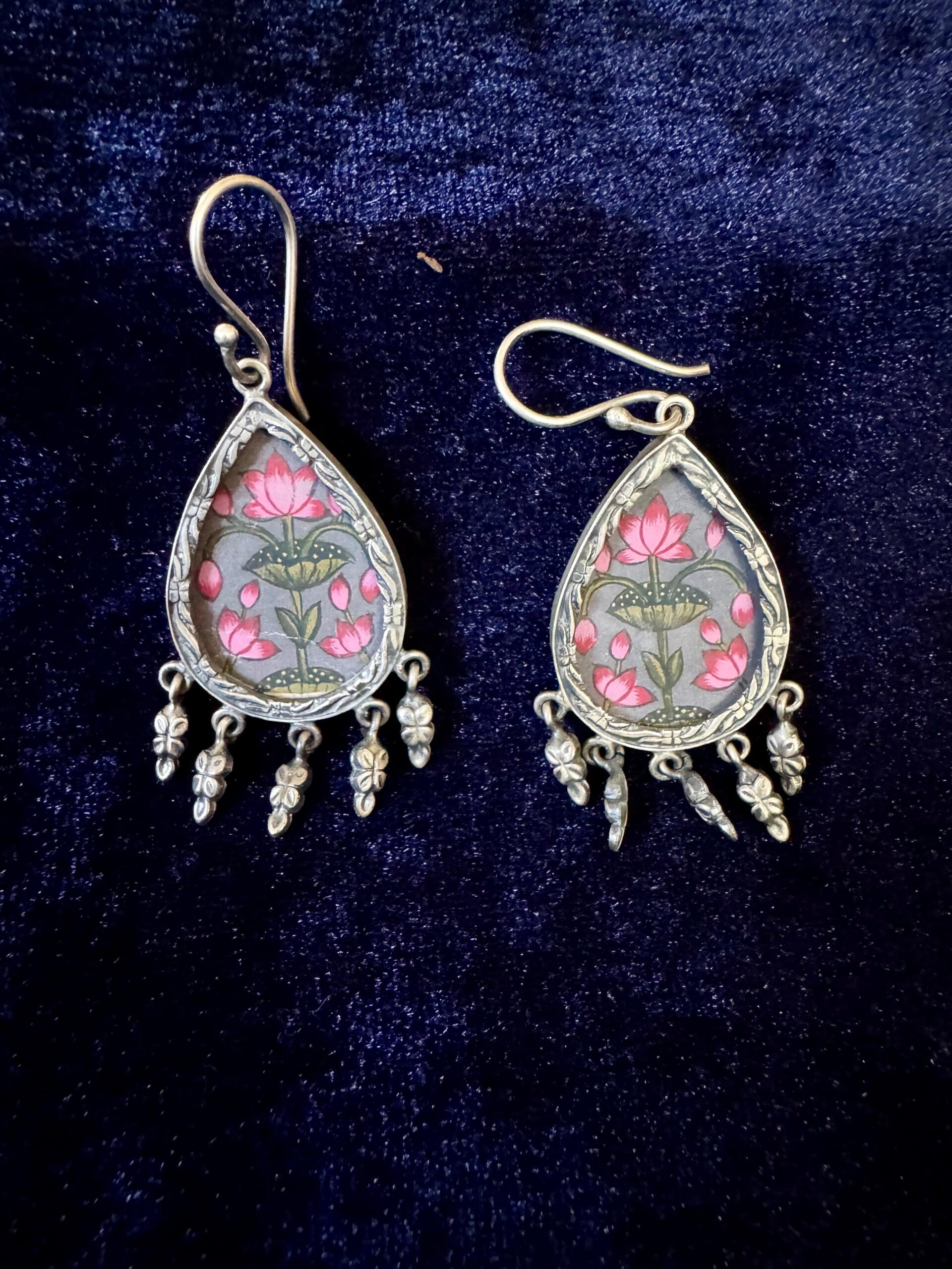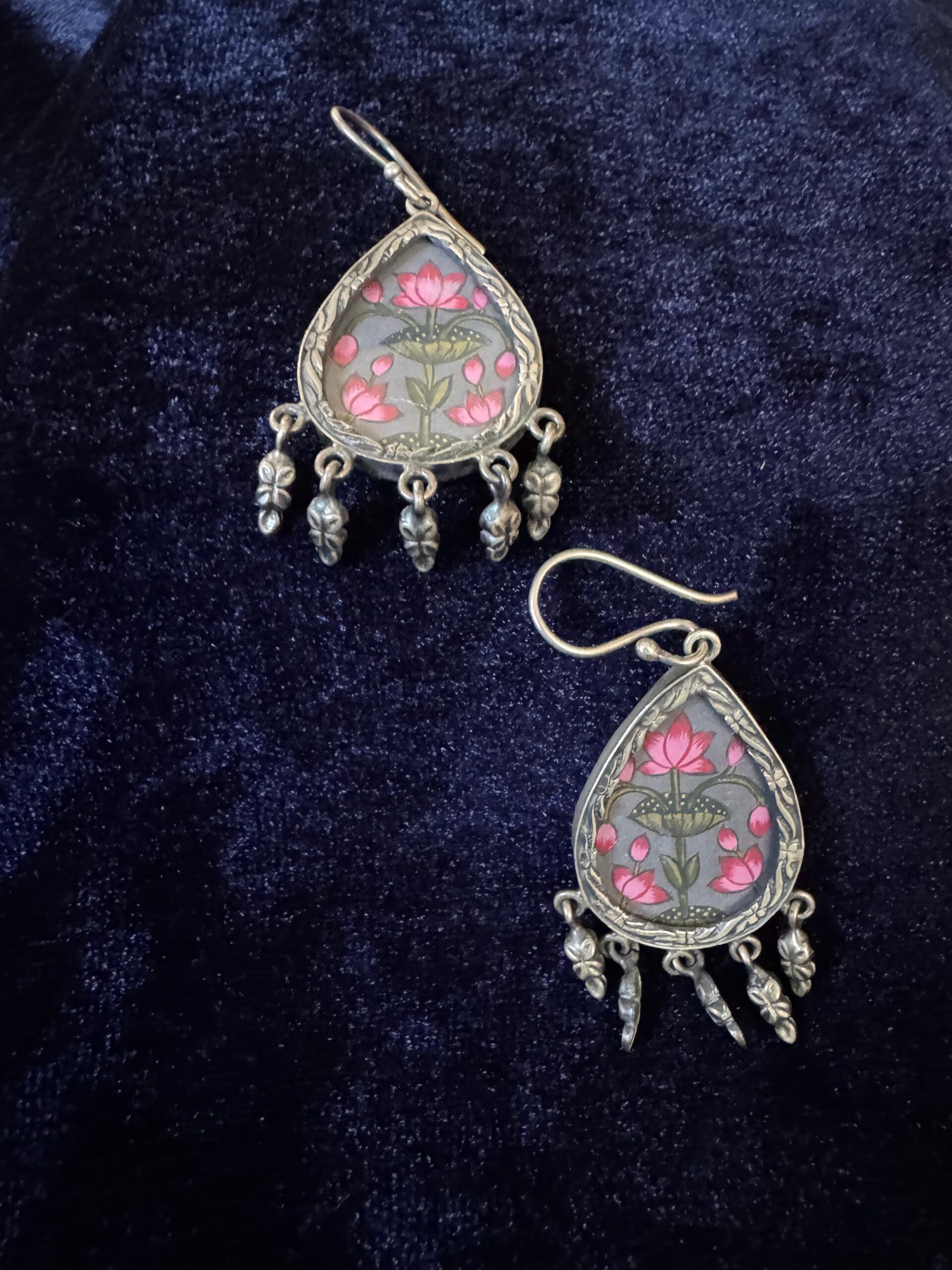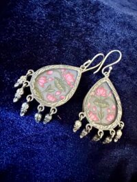Silver Plated Embroidery Hand Painted Enamel Coin Earrings